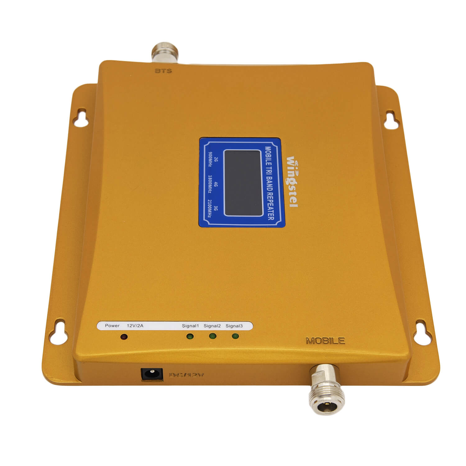 Усилитель сигнала связи Wingstel 900/1800/2100 MHz (для 2G/3G/4G) 65 dBi, кабель 15 м., комплект предназначен для улучшения качества сети внутри жилых и нежилых помещений. Прибор обеспечивает бесперебойный сигнал на всех приемниках в радиусе своей видимости. Подходит для работы с сетями 2G/3G/4G, максимальное входное и выходное усиление составляет 60/65 дБ соответственно. Усилитель выполнен в металлическом корпусе, защищен от мелких механических повреждений по классу IP40. Работает в температурном режиме от -10°С до +60°С.